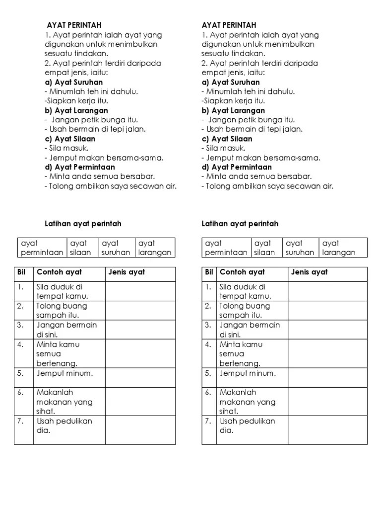 Ayat Permintaan Contoh Ayat Suruhan - Bm Ayat Perintah Education Quizizz. (b.m 4.2.6) menyalin perkataan dengan cara … Saya cuba untuk menulis dengan bahasa yang mudah dan santai supaya dapat memberi kefahaman tentang apakah yang hendak disampaikan oleh allah ﷻ. Berikan respons terhadap suruhan dan permintaan. Gantungkan kemeja ayah di dalam almari.